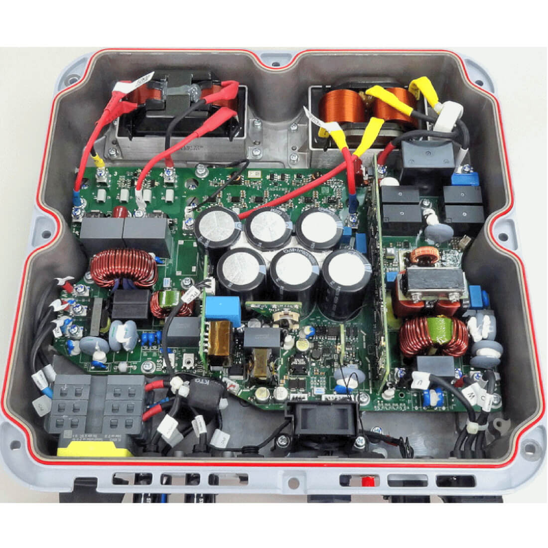 詳しく見る製品は家庭用の太陽光発電用パワーコンディショナです。太陽光発電用パネルで作られる電圧は直流400Vほどですが、それを家庭内で使うために交流100Vに変換するための装置です。